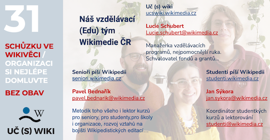 Organizace Wikimedia Česká republika je Vám vysvětlena ve druhé půli prezentace. Je to samočinná pobočka i spolek, několik málo 10-tek občanů i Wikipedistů. Vnímejte, že editorů Wikipedie (Wikipediánů) jsou tisíce, spolkařů 60+, manažerů a lektorů 10+. Dokážou Vám pomoci s lektorovaným kurzem na Vašem místě nebo v nejbližším větším městě
